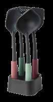 Support avec louche plus grattoir, cuillère à servir plus spatule, écumoire plus louche et spatule plus fourchette • Nettoyage facile - passent au lavevaisselle • Résistants à la chaleur - 220 °C max