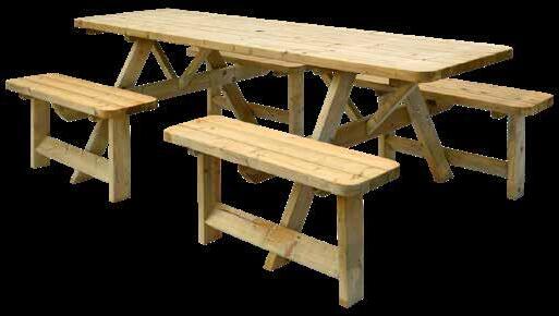 L240 x B155 x H78cm • Geïmpregneerd grenen hout , 4,2cm dik • Grote tafel die plaats biedt aan 8 personen • De set bestaat uit een tafelblad met 4 bankjes die gemonteerd worden aan de tafelpoten