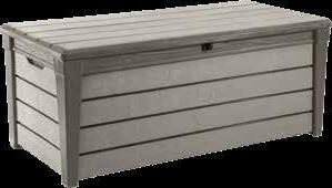 L145 x D69,7 x H60,3m • Met houtlook! • Functioneert ook als een bankje dat plaats biedt aan twee volwassenen • Met handgrepen: eenvoudig te verplaatsen! • Weerbestendig • Taupe