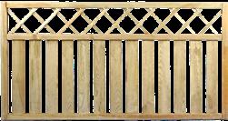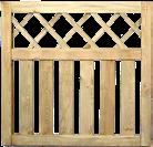L180 x H180cm • 17 planken • 15 x 120 x 1800mm • 3 tussenlatten 20 x 70 x 1800/960mm • RVS geschroefd • Grenen