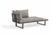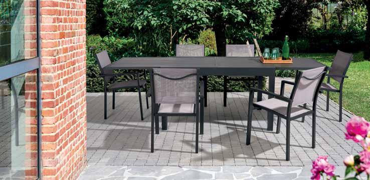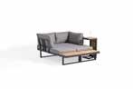 Cadre en aluminium & bois FSC acacia • 2 bancs L175 x l78 x H70cm • 1 table L70 x l35 x H38cm • 1 table L35 x l38 x H70cm • Coussins 10cm et coussins dos souples • Autres configurations possibles
