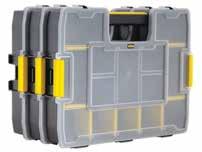 L29.2 x l37.5 x H6.7cm • Séparateurs amovibles permettant jusqu'à 512 configurations • Couvercle verrouillable avec une structure qui tient les objets en place • Facile à empiler et très pratique à l'usage