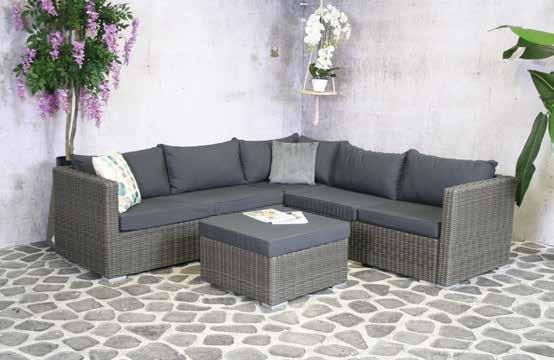 Cadre en aluminium - Wicker demi-rond • Sofa gauche L227.5xl78xH64cm • Sofa droit L151xl78xH64cm • Table basse L66xl66xH29cm • avec coussi • Coussins dos • Coussins d'assise 9cm