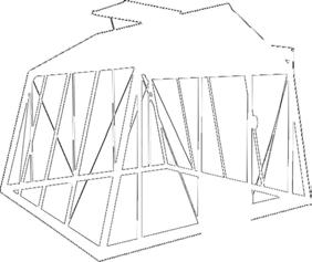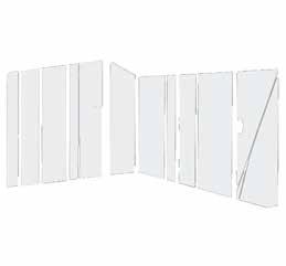 306X298 CM H172/237cm • Toiture en verre sécurit martelé 4mm • Paroi latérale en verre sécurit float clair 4mm • Structure en aluminium • Embase autoportante en aluminium avec ancrage • Vis et écrous en acier inoxydable
