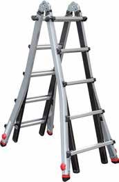 4x5 echelons • Télescopique: peut être utilisé à des hauteurs inégales par montant • Hauteur réglable à l'aide des leviers • Système de bloquage rapide et simple • Peut être utilisé comme échelle simple • Sabots solides antidérapants
