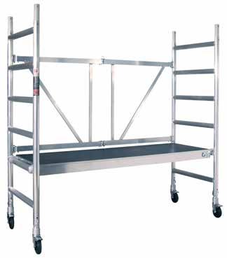 1,85 x 0,75 m • Hauteur de travail 2,70 m • 4 roues avec frein 125 mm • Equipé de 4 goujons montés • Broche de sécurisation automatique lors du montage • Garde corps plus haut pour une stabilité et sécurité améliorée