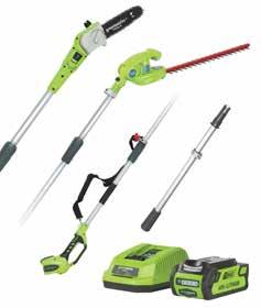 2.7m • Travailler jusqu'à 4.5m • Tête pivotante • Graissage de la chaîne automatique • Double interrupteur de sécurité