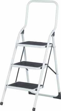 Gelakt staal • Extra grote treden met zwarte antisliplaag: 38 x 26cm • Automatische vergrendeling van de treden • Antislipvoetjes