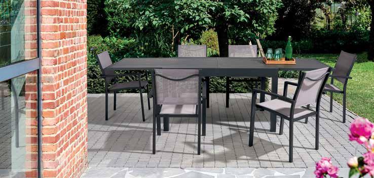 l77 x H70cm • Banc 3 places L178 x l77 x H70cm • Banc L120 x l40 x H40cm • Table L140 x l80 x H68.5cm • Avec coussins 680829/S PRIX BAS PERMANENT EXTENSIBLE SET DE JARDIN 'BORDEAUX' 1 TABLE EXTENSIBLE Alu, anthracite • L130/260 x l90 x H75cm. 680827/S 6 CHAISES Alu & textilène anthracite 680834/S PARASOL 'TAHITI' 3X3M Mât en aluminium • Toile polyester 200g/m² • 8 baleines en alu • AUTO -ROTATION 360° 695273-5/S CHAISE 'CHRONOS' Alu & textilène anthracite 680826/D PRIX NORMAL 5500 /CHAISE A L'ACHAT DE 4 CHAISES A L'ACHAT DE 8 CHAISES /pce /pce PIED POUR PARASOL 90kg • 80 x 80 x 10cm • Sur roues 695282/D LANTERNE SOLAR METAL Ø15.5cm x H22cm 680260/D TAUPE ANTHRACITE GRIS CLAIRE