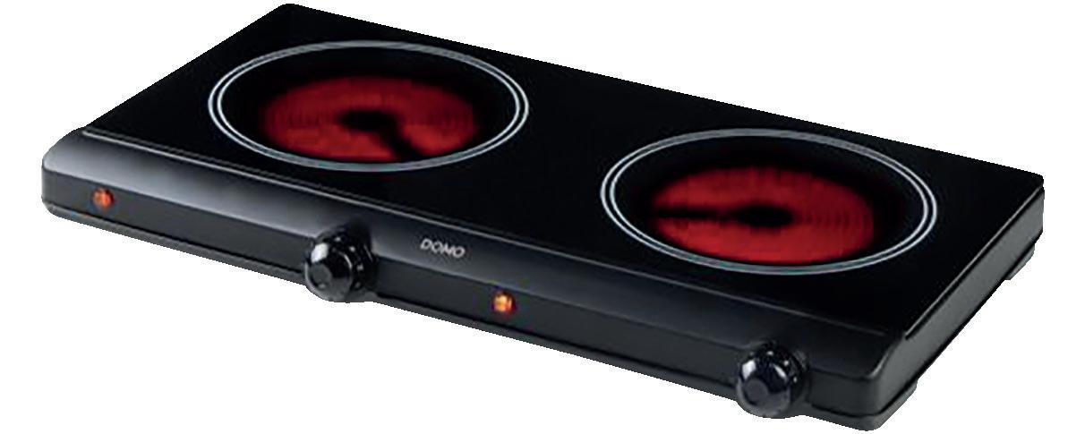 Double plaque de cuisson 2500W. Technologie infrarouge. Zone de cuisson : 2 x Ø 18cm. 30% moins de consommation d’énergie par comparaison avec les plaques de cuisson électriques traditionnelles.