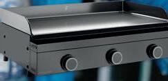 Bac à graisse intégré contenance 1 l. Pieds réglables à l’arrière. Manettes de réglage avec allumage brûleur intégré.