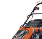 Châssis en polypropylène. Largeur de coupe 41cm. Hauteur de coupe centralisée. 5 positions 20-80mm. Bac récolteur 50L. Mulching. Jusqu’à 500m².