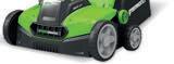 ‘GD40LM46SP’ 40V, 2 x 4.0Ah. Châssis en acier. Largeur de coupe 46cm. Hauteur de coupe centralisée. 7 positions 19-76mm. Bac récolteur 55L. Mulching. Ejection latérale pour la tonte de l’herbe haute. Jusqu’à 1200m². 622009/D
