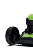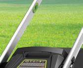Châssis en polypropylène. Largeur de coupe 41cm. Hauteur de coupe centralisée. 5 positions 20-80mm. Bac récolteur 50L. Mulching. Jusqu’à 500m².