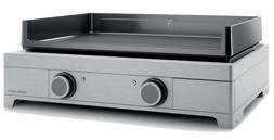 Bac à graisse intégré contenance 1 l. Pieds réglables à l’arrière. Manettes de réglage avec allumage brûleur intégré.