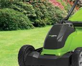 Châssis en polypropylène. Largeur de coupe 41cm. Hauteur de coupe centralisée. 5 positions 20-80mm. Bac récolteur 50L. Mulching. Jusqu’à 500m².