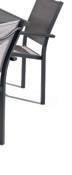 Cadre en aluminium, carbon black / mystic grey. Canapé d’angle L240 x l240 x H72 cm. Table basse L75 x l75 x H35cm. Hauteur d’assise 42 cm. Avec coussins imperméables 10cm.