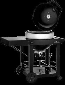 Bakoppervlak 71 x 46 cm. Gietijzere rooster. Deksel en kuip van staal met epoxycoating en een ingebouwde thermometer. In hoogte verstelbare houtskoolbak voor gecontroleerd direct of indirect bakken. Handig, met uitklapbare bladen opzij, haakjes voor accessoires, een ingebouwde asbak en wieltjes. L153 x D71 x H132 cm. 692514/S