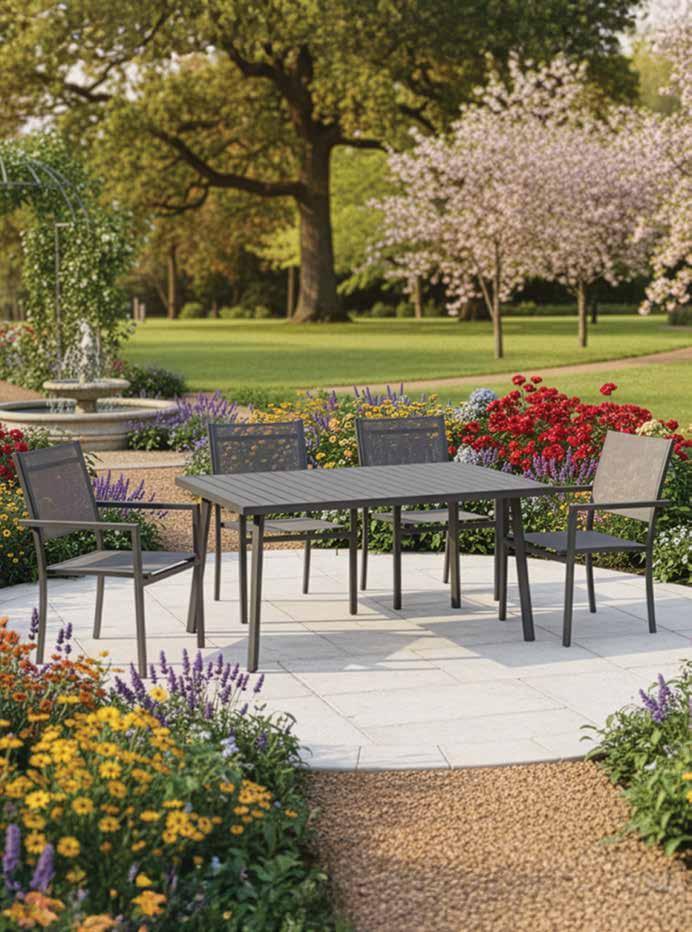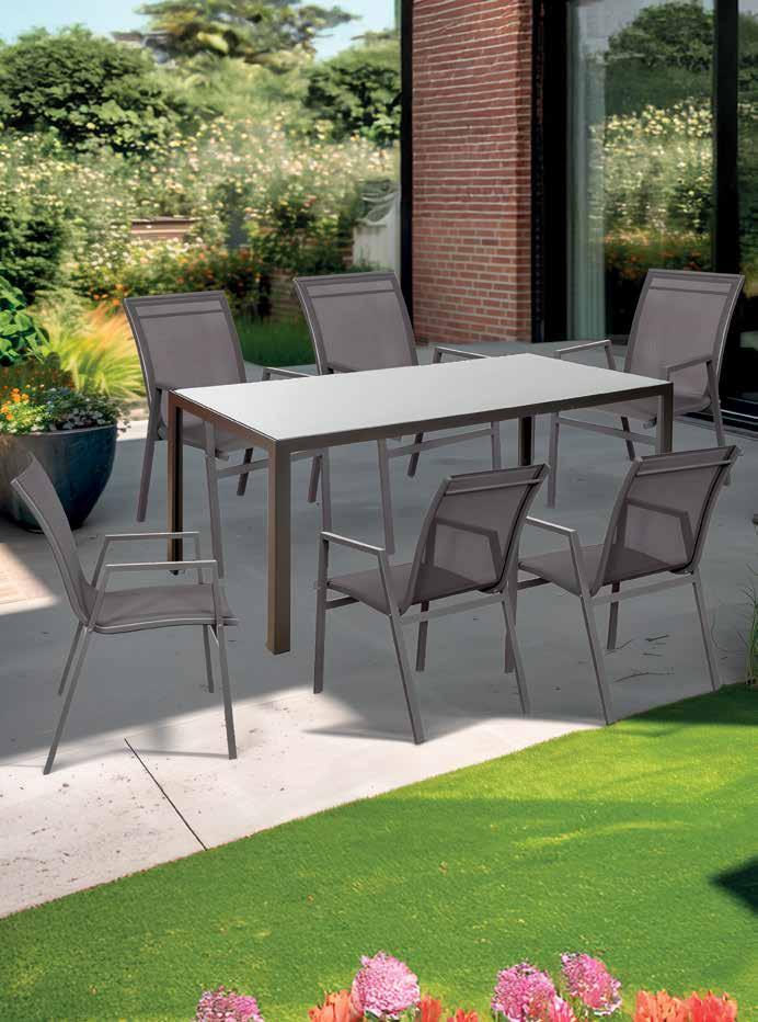 Aluminium en antraciet polyester. L196 x B72 x H45 cm.