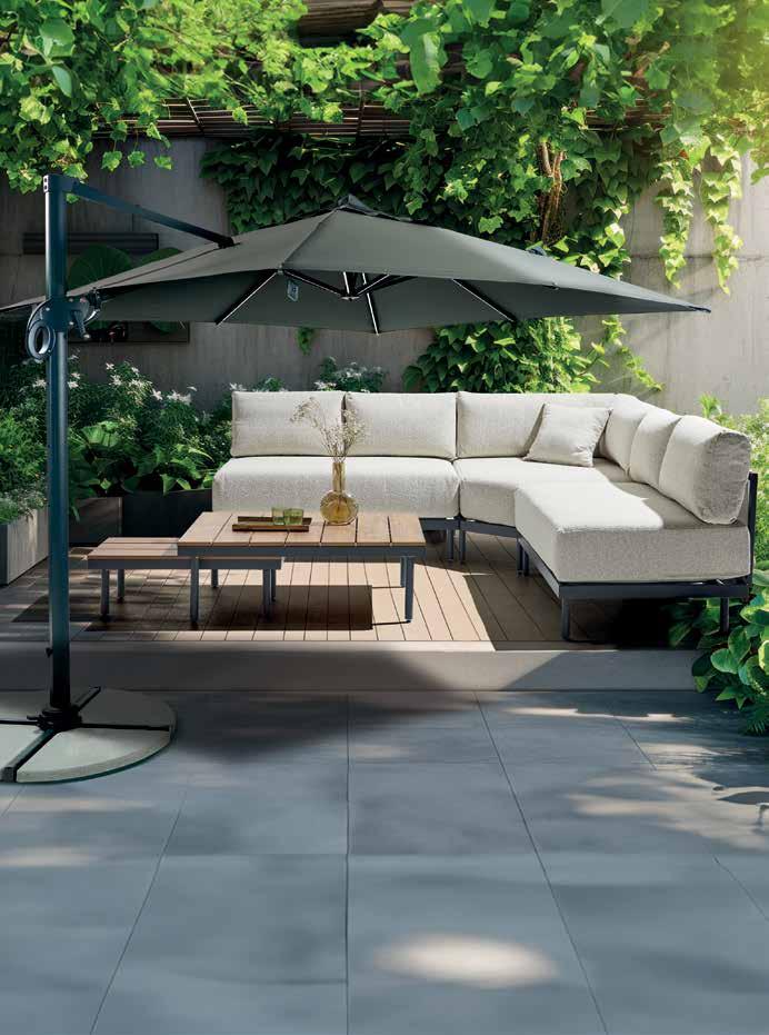 Aluminium mast. 53 x 77 mm. Polyesterdoek 250 g/m2. 8 aluminium baleinen 14 x 24 mm. Geïntegreerd 1,5W ledlicht op zonne-energie. Kantelbaar en 360° draaibaar Antraciet - 680246/S - Zand - 680903/S