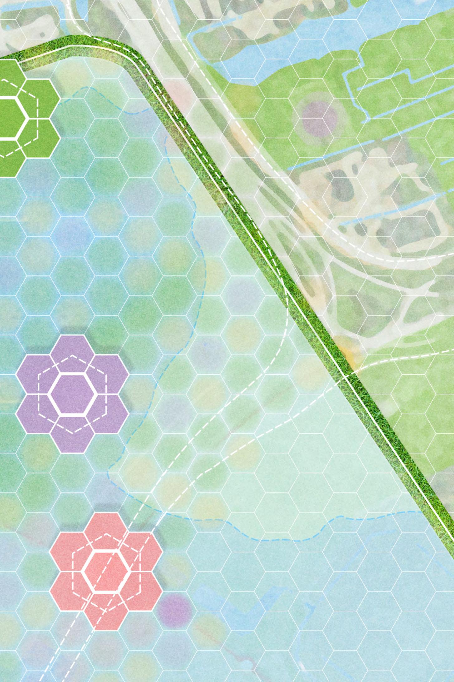 To do so, I chose to follow three typologies over time, and to focus on the transiton from the traditional Dutch value of "makeable nature" to a more sustainable harmonious philosophy of "living with nature"