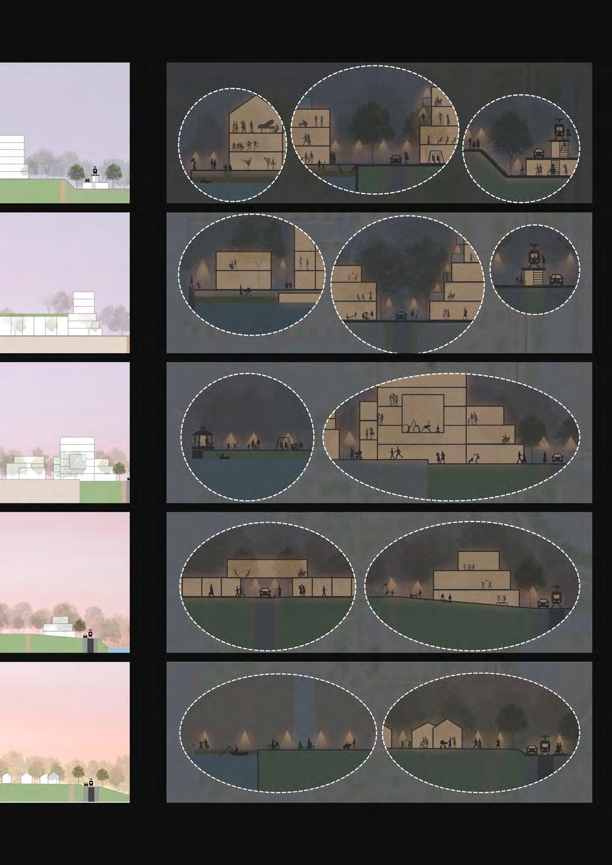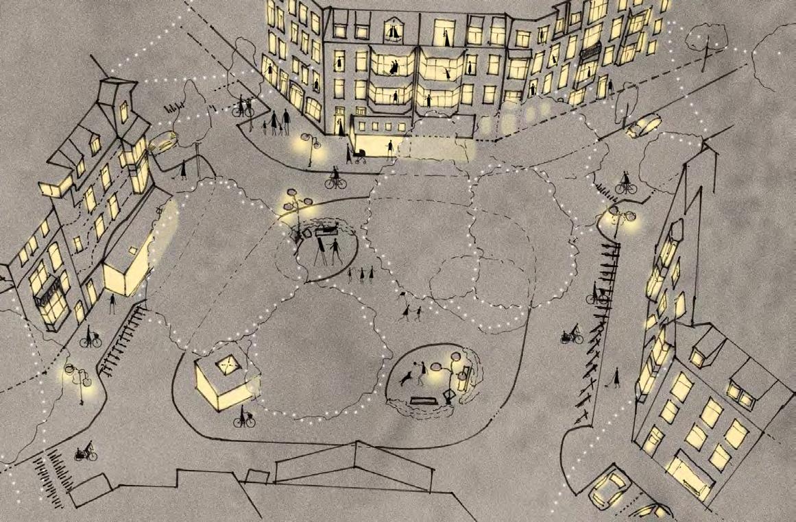 The primary task is to create more ‘living edges’ so that unused spaces become an active part of the neighbourhood fabric not just during the day but in the evenings as well. The time between sunset and sunrise are often overlooked in spatial design, even though is when the residents spend the majority of their time while at home.