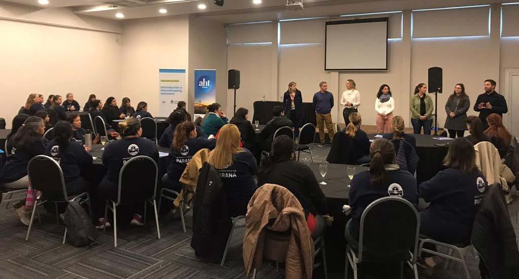 ya son 100 % presenciales. En ese sentido, Salvucci argumentó que de esa manera se vuelven más productivas y dinámicas. Además, consideró que ya no se busca recuperar a los trabajadores que se fueron sino captar gente nueva, así como también continuar formando a quienes siguen integrando parte de los planteles, para que el que está “pueda progresar dentro del hotel”. En contraposición, Oscar Rubinos explicó que en Tierra del Fuego todas las actividades tuvieron una recuperación, aunque el turismo se reactivó más rápido. “La AHT tiene un programa de capacitación virtual interesantísimo y uno trata siempre de aprovecharlo. Cada empresa trabaja en buscar con los equipos de trabajo que los empleados se queden en la empresa”, mencionó. Además, remarcó que la importancia de la capacitación radica en la competencia con los alquileres temporarios, que no tiene servicios diferenciales ni empleados. “Si hay un 10 % de rotación en los hoteles, parece que es poco pero hay que estar constantemente buscando personal y entrenándolo. Lo ideal es siempre tratar de mantener un staff permanente, sobre todo en temporada alta”, sumó Rubinos.