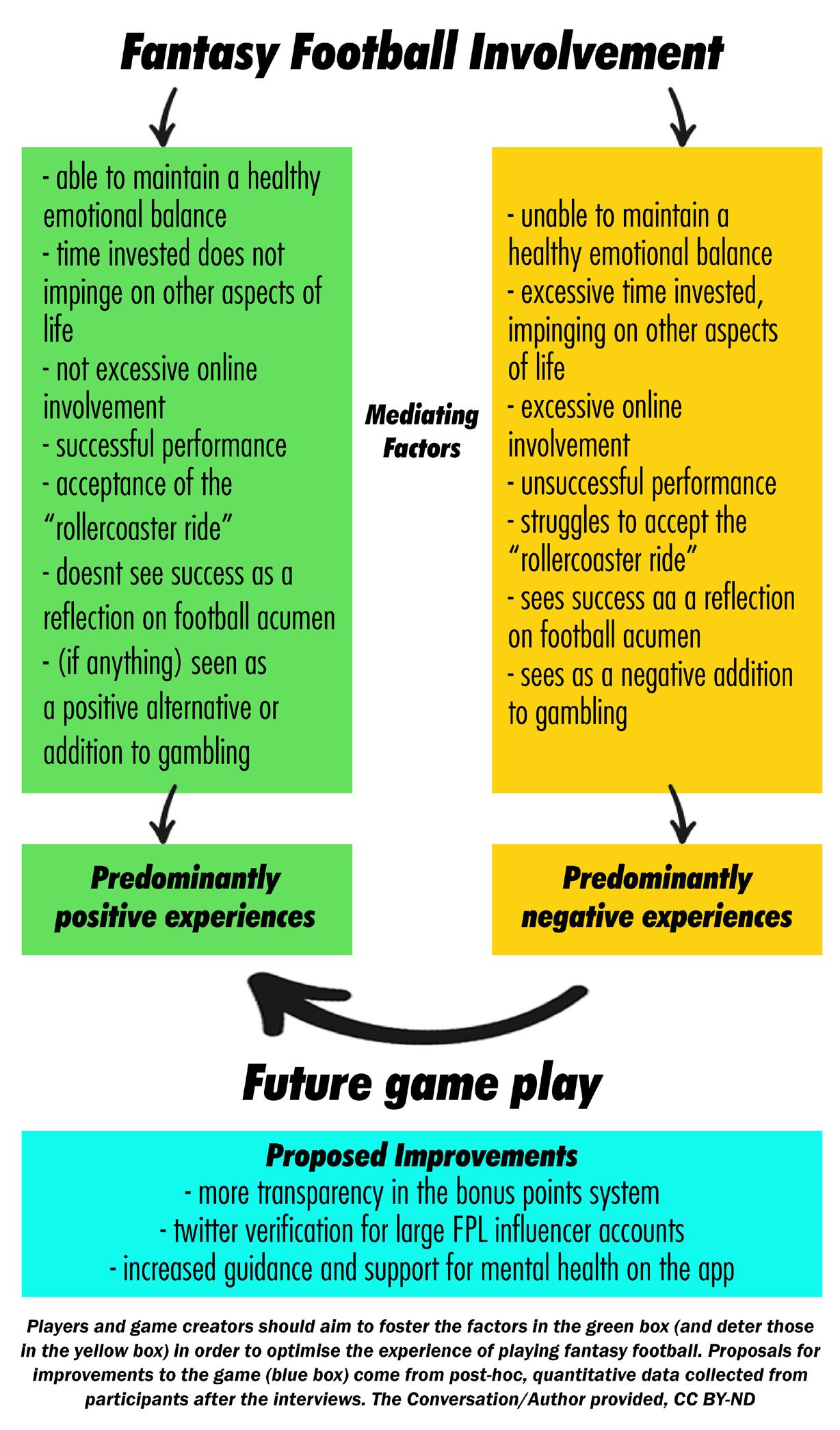 Nevertheless, we believe through identifying these factors, we can help players become more mindful of their fantasy football involvement, and the impact it may have on their mental health.