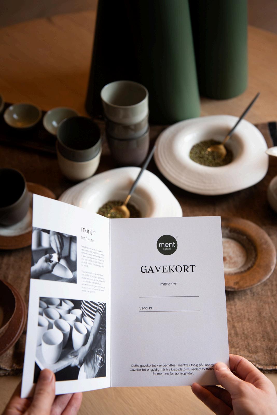 Et gavekort fra ment® gir mottakeren frihet til å velge blant vårt store utvalg av håndlagde produkter i porselen og tre – skapt med omtanke, kvalitet og varighet i fokus. Men det er mer enn en personlig gave. Det er også et valg med omtanke for verden rundt oss.