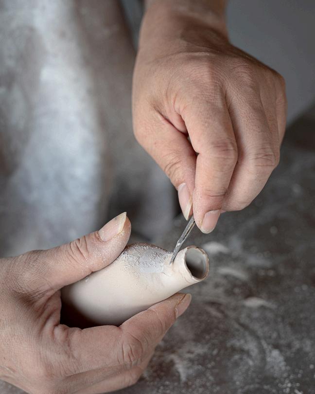 Produkjonsprosessen tar syv dager fra vi blander fargene inn i porselensmaterialet til produktet er ferdig