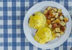 eggs, choice of breakfast potatoes hash browns and choice of bacon, or mild Italian sausage. Served with toast 12.99