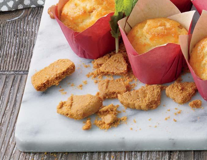 The warm, caramelized flavors of cinnamon, ginger, and nutmeg in cookie butter, reminiscent of speculoos cookies, blend beautifully with the subtle sweetness of the muffin. Together, they form a comforting, satisfying flavor that’s both familiar and indulgent, making it an ideal choice for a cozy snack or dessert.