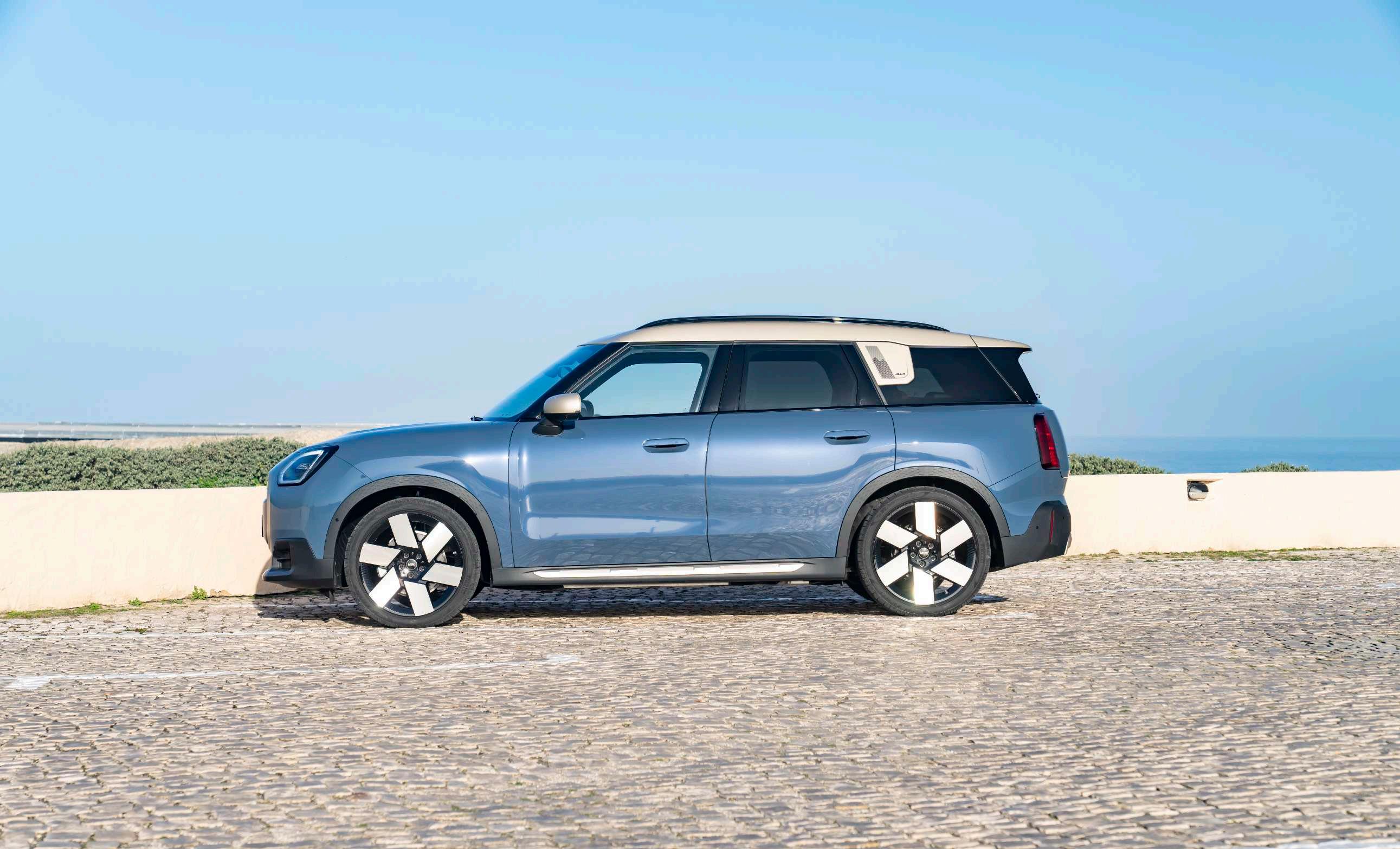 Sob a estética sofisticada, o MINI Countryman SE ALL4 revela uma personalidade dinâmica. Equipado com dois motores eléctricos e sistema de tração integral ALL4, oferece a combinação perfeita entre eficiência e performance. A aceleração imediata típica dos veículos eléctricos traduz-se numa condução fluida e envolvente, enquanto a tracção integral garante segurança e versatilidade em diferentes cenários — da rotina urbana às escapadelas de fim de semana. É o tipo de carro que se sente tão confortável entre cafés e galerias de arte como numa estrada costeira ou numa viagem espontânea fora da cidade.