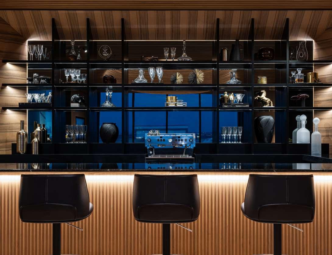 No interior, o design sofisticado de João Armentano traduz uma estética contemporânea que combina peças de vanguarda com um ambiente acolhedor e elegante. O paisagismo inovador de Gilberto Elkis introduziu o conceito de “paisagismo aéreo”, com plantas suspensas que dialogam com a arquitectura e reforçam a sensação de leveza e fluidez do espaço.
