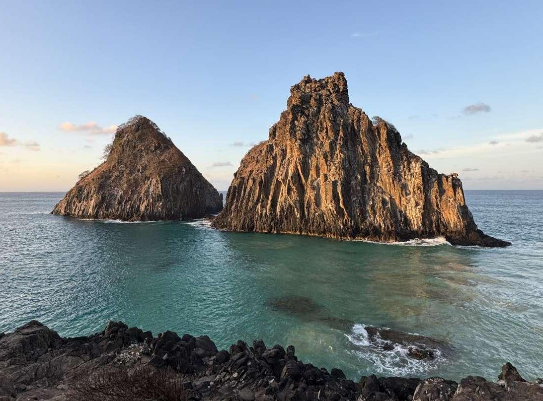 Trilha Atalaia: É uma daquelas experiências onde entendemos na prática o que significa preservação. O acesso é controlado, o grupo é pequeno e isso muda tudo. Quando chegamos à piscina natural, a sensação é de privilégio. A água é rasa, extremamente transparente e é um berçário de vida marinha: tubarões-lixa, pequenos peixes, arraias - um ecossistema vivo e intacto. Piscina Natural Morro São José: A trilha do Morro São José é um oásis que acontece com a maré muito baixa e com acesso por uma faixa de rochas vulcânicas que conecta a ilha principal ao morro. A vista é deslumbrante com água extremamente cristalina e quando o sol bate, o reflexo se transforma num verdadeiro salão natural de pedras submersas, iluminado em tons de azul e verde. Algo diferente de tudo o que já vi pelo mundo. Trilha do Piquinho: Ideal para ver o pôr do sol de verdade. A subida tem aproximadamente uns 40 minutos entre árvores grandiosas e quando atingimos o pico e o sol começa a descer, o céu ganha tons de dourado e laranja intenso. Um local onde sentimos profunda gratidão pelo agora, o presente.