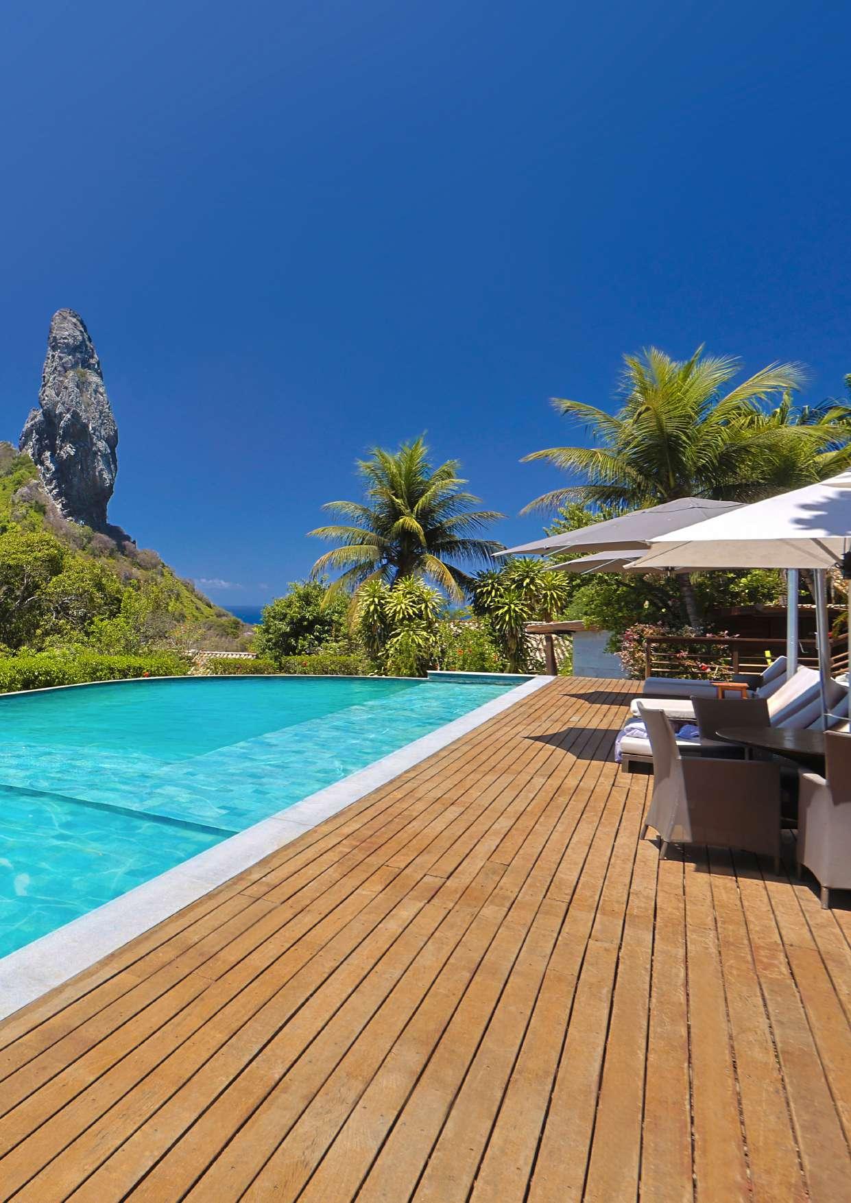 Nannai Noronha: O exclusivo Nannai Noronha é aquele refúgio que entrega verdadeira privacidade. Com apenas dez alojamentos, entre bungalows e apartamentos, integrados na natureza e com uma das vistas mais bonitas da ilha, a boa gastronomia do restaurante TiaTê Noronha e diversas experiências de wellness. Akanã Eco Pousada: Hospitalidade que vai além do óbvio. A diferença da Akanã está no lugar e na intenção, pensada por apaixonados pela ilha que aqui encontram um dos cenários mais bonitos. Com vista aberta para três das praias mais desejadas, o projecto respeita a paisagem e valoriza a luz natural. É exclusivo na medida certa sem perder a alma de Noronha. Pousada Maravilha: Uma maravilha, literalmente. Conforto, personalidade e uma vista deslumbrante para a Baía do Sueste. A piscina infinita, os bungalows com varandas amplas, tudo conversa com a paisagem sem exageros. A gastronomia é uma das mais elogiadas da ilha e o atendimento é atencioso. Uma escolha madura para quem sabe que Noronha merece ser vivida com qualidade.