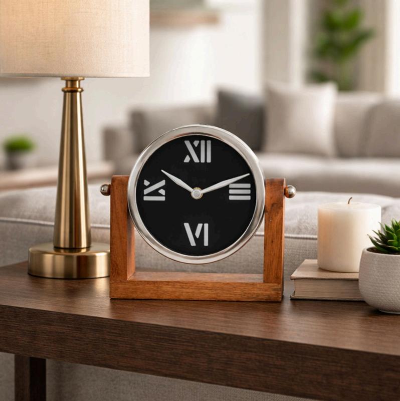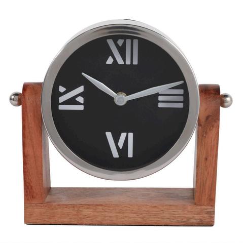 Reloj sobre Base de Madera Grande, Plata