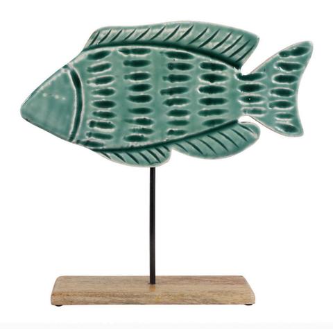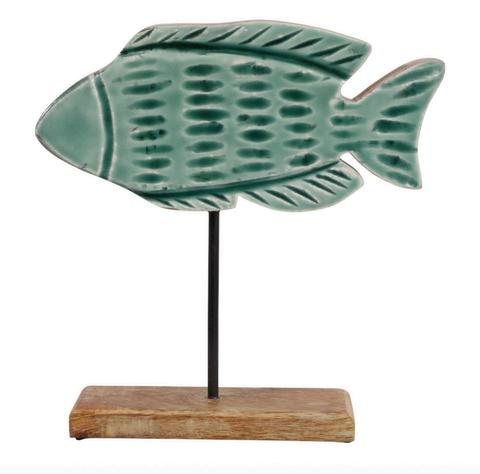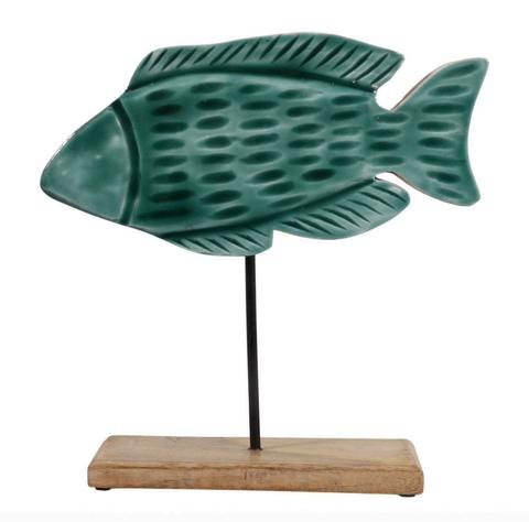 Pez de Madera sobre base , Azul