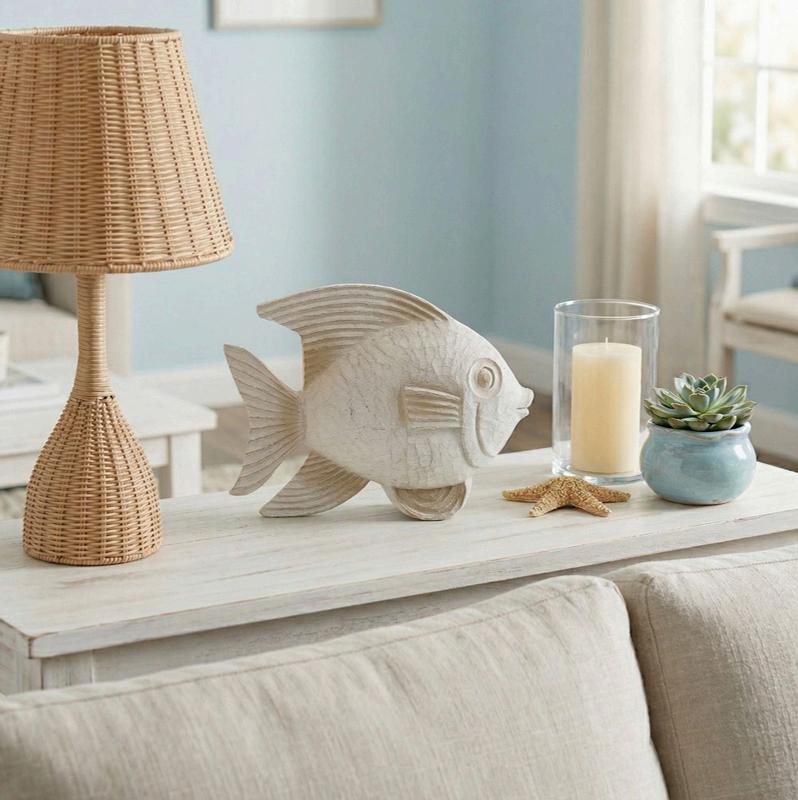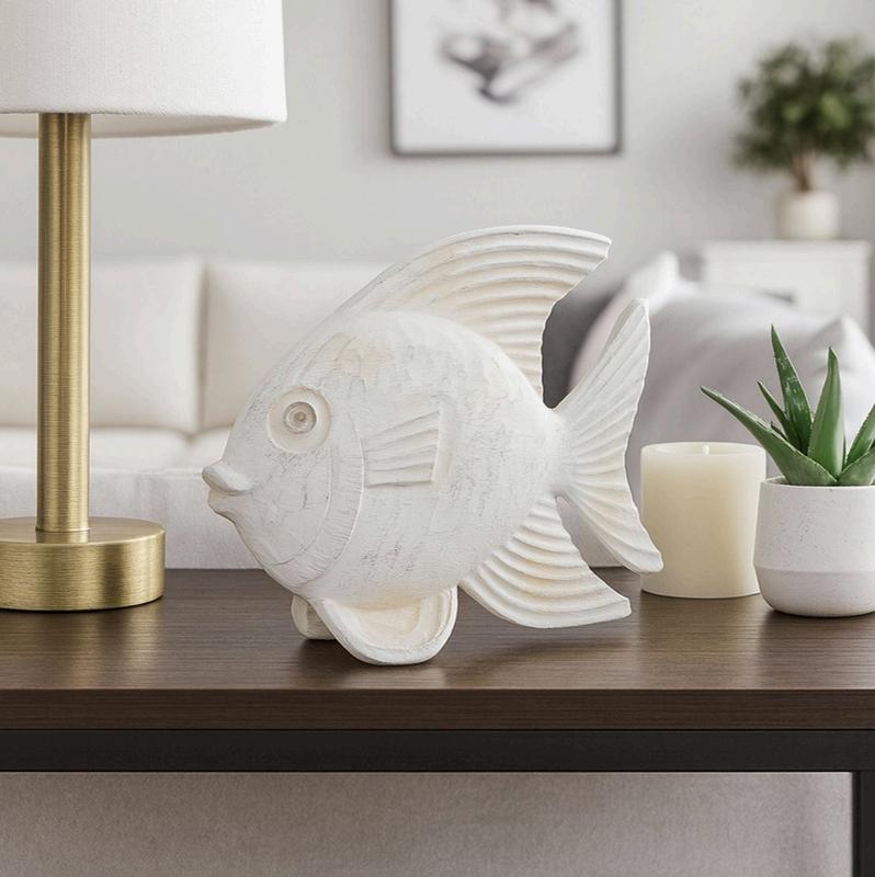 Figura Pez Resina Pequeño, Blanqueado