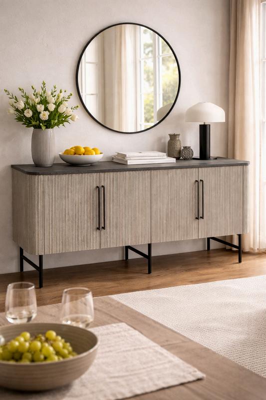 Mesa de Centro Redonda con Estructura de Metal Top de Madera