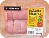 Uresničujemo vaše velike načrte 4 | Piščančji fi le Mercator, Izbrana kakovost, pakiran, 500 g ŠIFRA art.: 134803 3,7200 Cena z DDV: 4,07 Piščančji zrezki Mercator, izbrana kakovost, pakirani, 500 g ŠIFRA art.: 135992 4,0120 Cena z DDV: 4,39