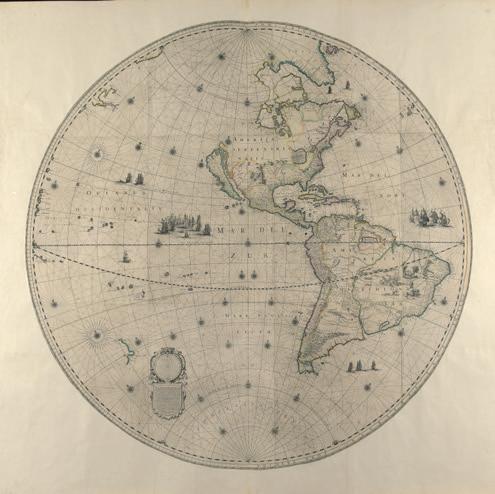 above: Part of a 1648 world map containing previously confidential Dutch coastal data of South America. The map was presented to Charles II of England