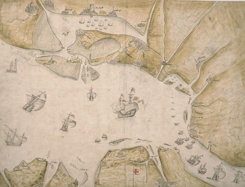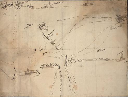 Pictured top left: A hand drawn sketch of the sea route into the Zuider Zee, made in autumn 1539 for Henry VIII