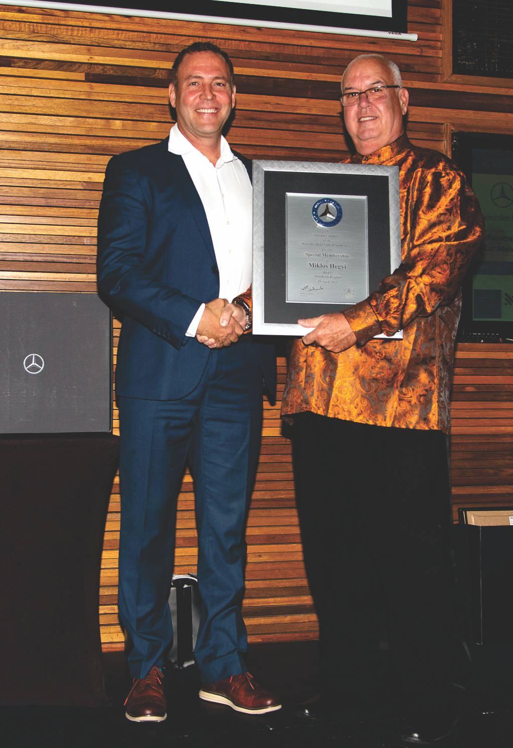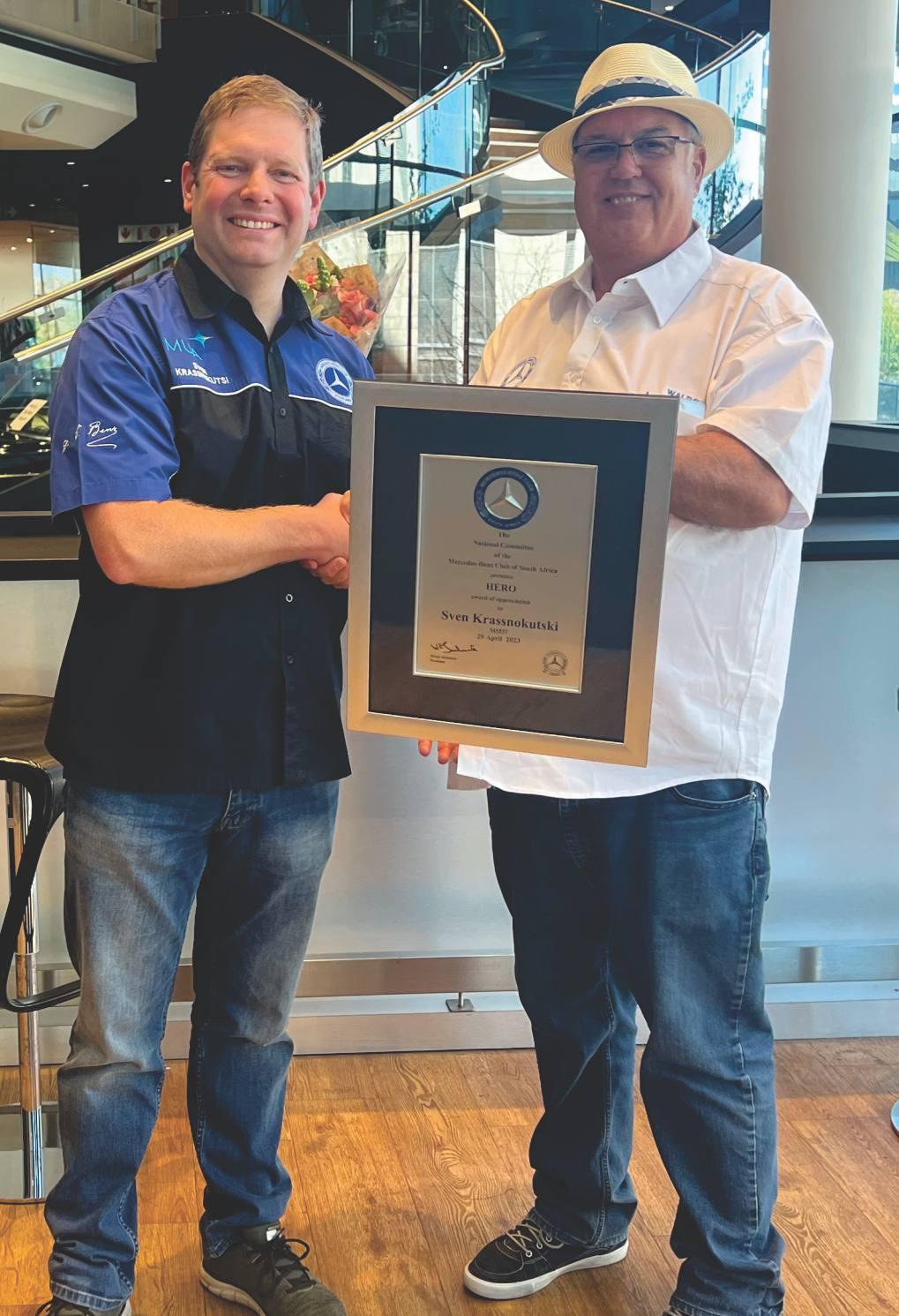 I had the privilege of bestowing a Hero award to Pieter Booysen. Sven Krassnokutski and Koos du Toit, with Special memberships awarded to Pius Mokgokong, Miklos Hegyi and Clint Weston from MBSA, for their contributions to the Club and the Marque. ank you to Anna-Lee Dos Santos and everyone who contributed.