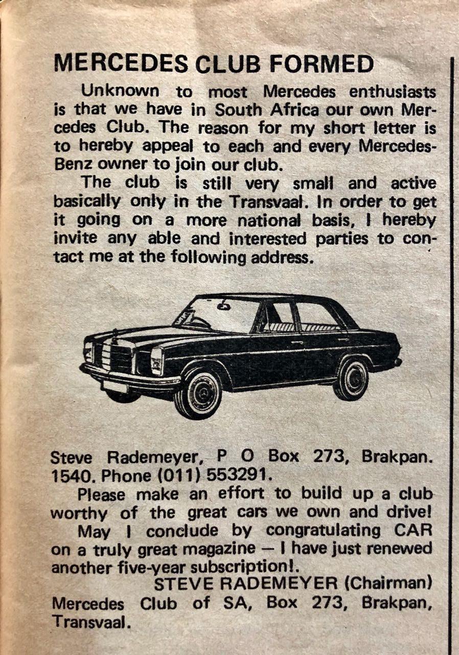 That’s right, like a late W 23 or stately 26, the Mercedes-Benz Club of South Africa has been aroundforfourdecades;andlooks justasgoodasthose80'sBenzes.