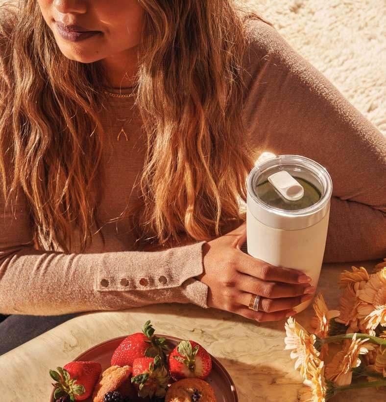 A tumbler designed for straw lovers featuring a press fit lid with a reusable straw and a modern, matte finish that's a pleasure to hold. Not recommended for hot beverages.