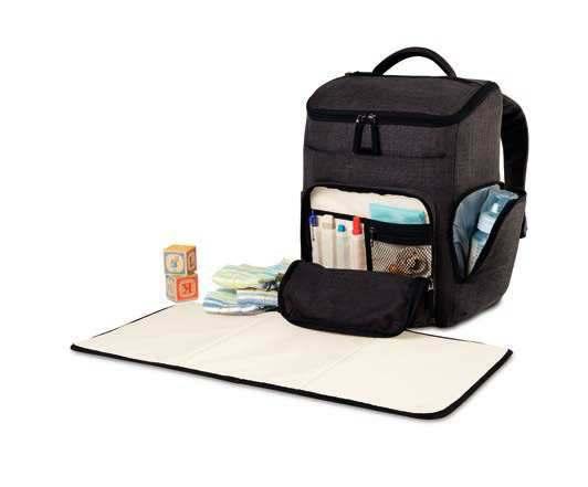 Every parent will appreciate the features and unisex style of this diaper backpack with easy stroller attachments and a removable changing pad. Large opening allows for easy access. The exterior features an insulated bottle pocket and the interior includes two bottle pockets. Made with recycled fabric (rPET) made from plastic bottles.