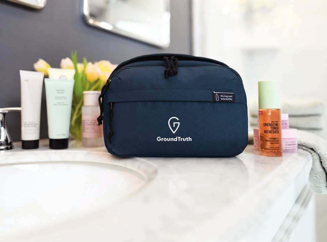 Feel good about this handy bag designed with recycled fabric (rPET) and webbing made from plastic bottles. Toss it in a tote, backpack or duffel and keep all toiletries ready to go.