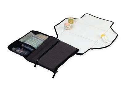 Sometimes a portable changing station is all you need. This one delivers with front-zippered diaper storage and a convenient zip-off, washable changing pad. Easy to carry, attach to a stroller or stow inside a diaper bag or tote. Made with recycled fabric (rPET) made from plastic bottles.