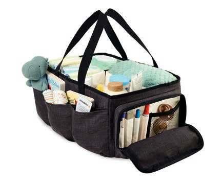 What could be smarter than a portable nursery? This caddy offers plenty of space for all the newborn essentials and is foldable and lightweight. New parents will appreciate their newfound mobility and the thoughtful organizational features of this caddy. Made with recycled fabric (rPET) made from plastic bottles.